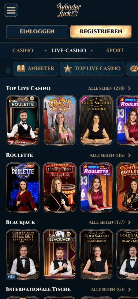Sind Sie ein eingefleischter Fan von Online-Casino-Spielen wie Tischspielen, Spielautomaten, Mega Ways und Live-Casino-Sessions, die auf einer mobilen Anwendung gespielt werden, und möchten Sie die Anwendung herunterladen? WonderLuck ist Ihre beste Wette. Bei WonderLuck genießen Sportliebhaber Gaming-Abenteuer auf dem Handy, ob sie Räder eines neuen Spielautomaten drehen, Quoten erkunden, Wetten platzieren oder auf ihre Lieblingsmannschaft wetten wollen.
